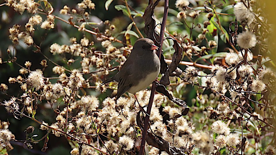 Quelle surprise ! Le Junco ardoisé surgit aujourd’hui. Et la présence de cet oiseau est très très très variable.