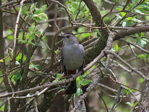 Voici maintenant une beauté, le Moqueur-chat (Dumetella carolinensis, Grey Catbird)