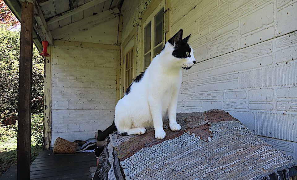 La chatte était sur la bûche de bois hier matin, sur la galerie arrière.