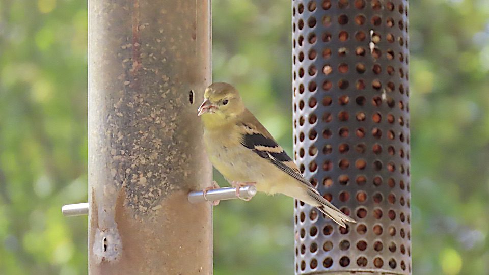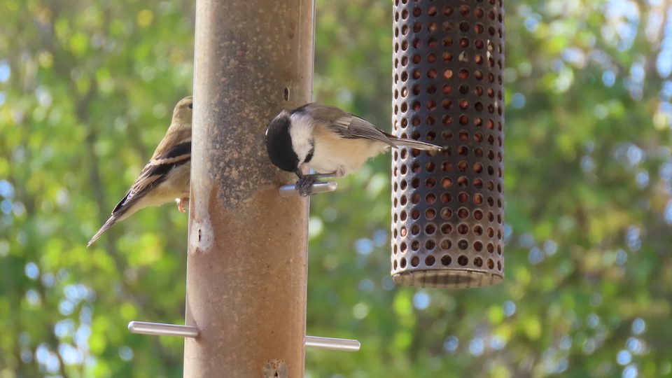 La Mésange à tête noire, bien occupée, et le Chardonneret jaune qui va devenir femelle.