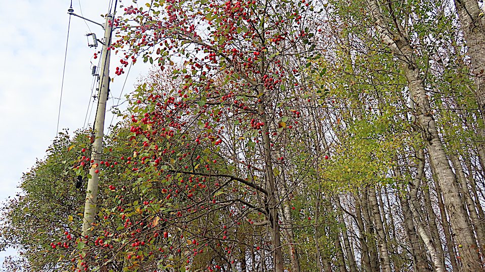 Le pommier à l’entrée de mon terrain, du côté ouest. Spectaculaire.