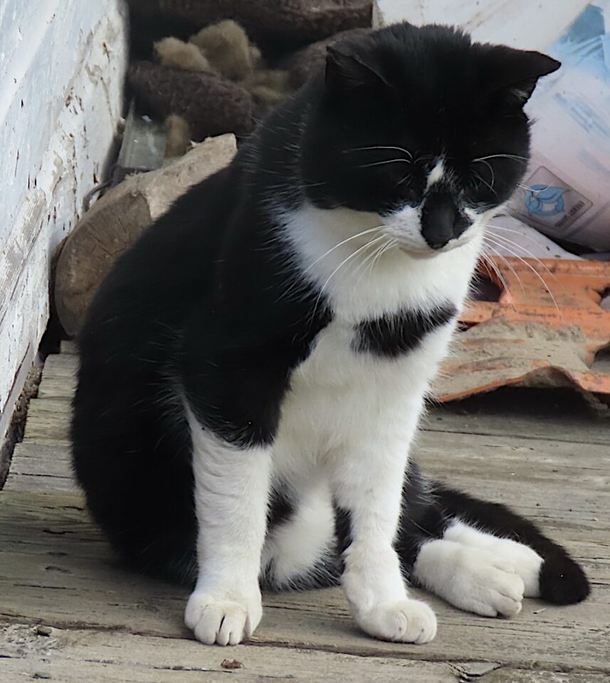 À mon arrivée, cet avant-midi, le chat adolescent attendait sur la galerie à l’avant. J’étais tellement heureux de le voir… et de lui parler. Bien sûr, la bouffe a suivi.