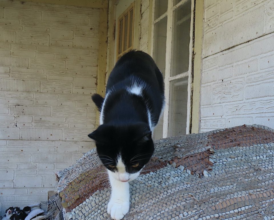 En voici un qui descend de la bûche de bois sur la galerie arrière.
