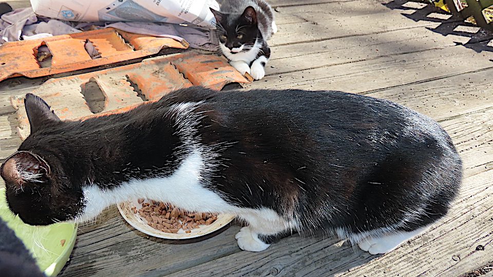 Le chaton adolescent est arrivé en fin de matinée. Je lui ai donné de la bouffe et de l’eau.