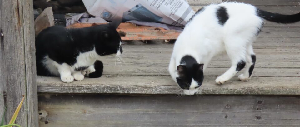 À mon arrivée hier matin, la chatte est venue saluer le chat adolescent sur la galerie avant.