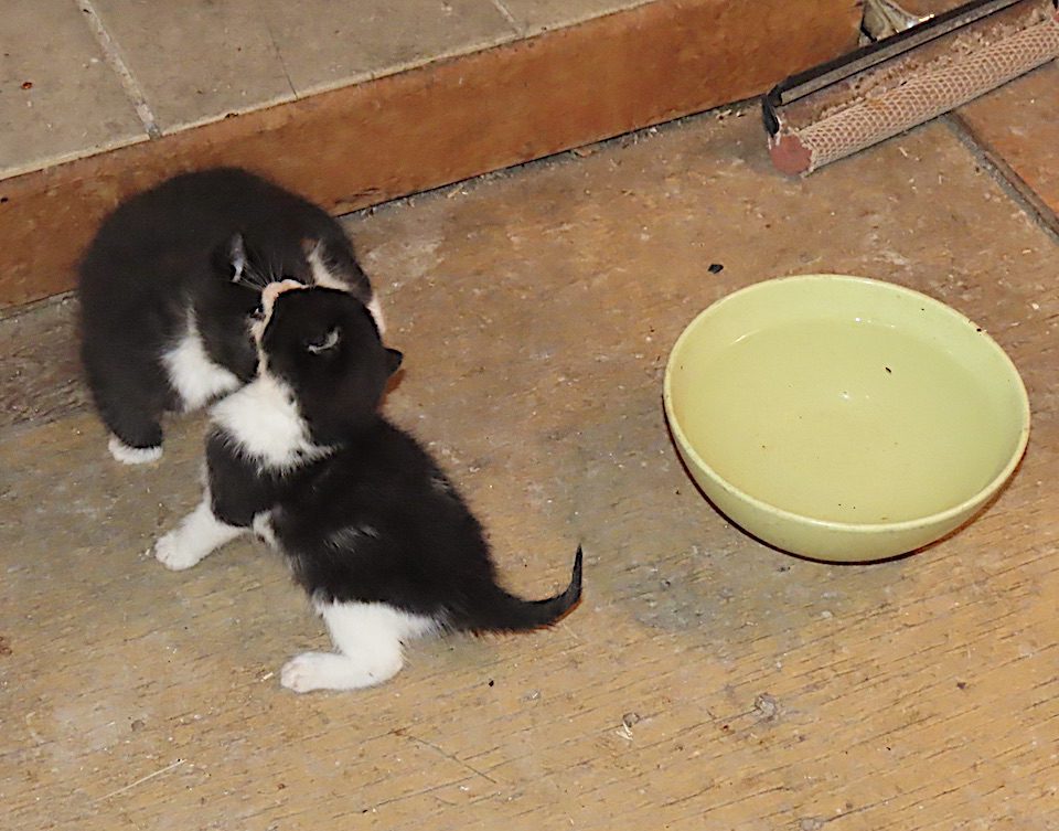 Dans la maison, un bagarre entre deux chatons qui n’ont pas encore un mois.