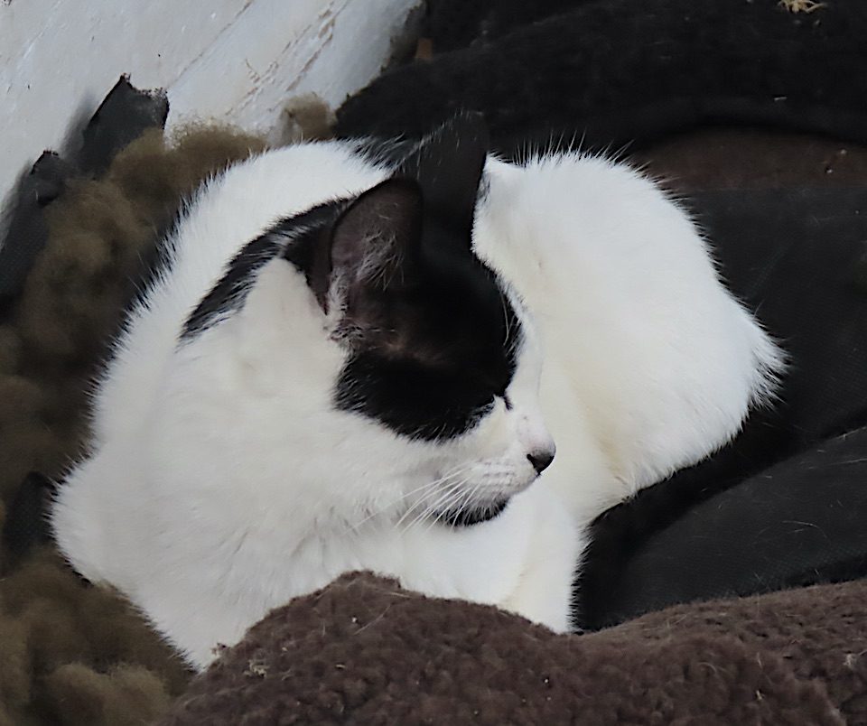 Sur la galerie avant, ce chat s’est endormi.