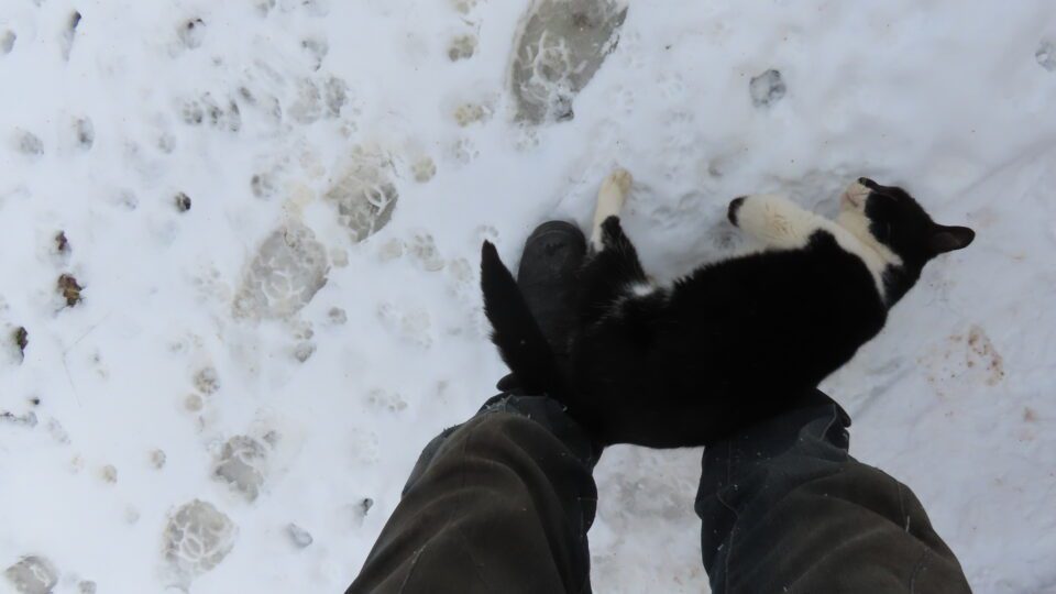 Le magnifique chat adolescent couché sur mes bottes à mon arrivée.