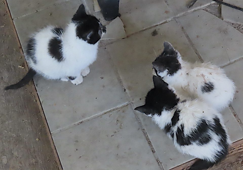 Trois jeunes chatons près du poêle, dans le centre du rez-de-chaussée.