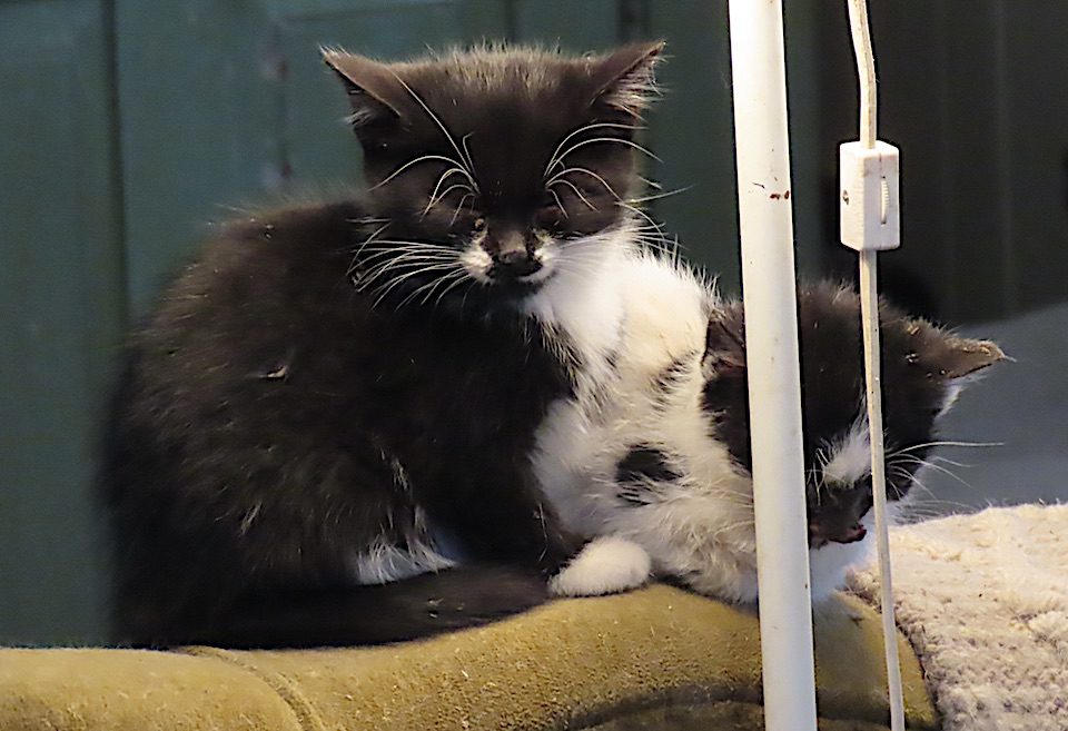 Ces deux chatons sous la lumière que j’ai laissée en place, même en quittant pour un moment.