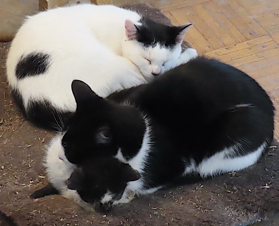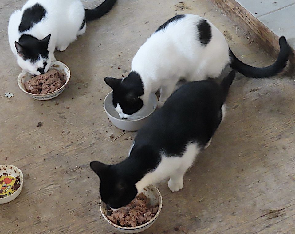Absente depuis une journée, la chatte est venue se placer à mes pieds, avant notre entrée dans la maison.