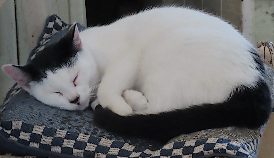 Voilà un autre chat qui essaie le coussin que j’ai trouvé le 19 novembre à Saint-Étienne-de-Lauzon.