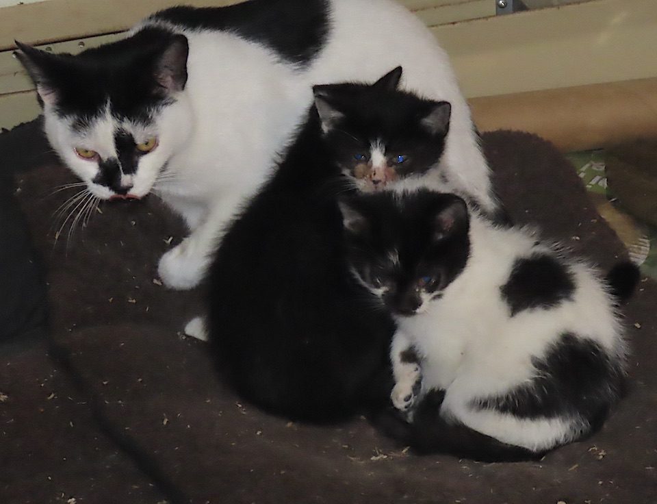 Rapidement entrés, trois chats, dont deux très jeunes, forment un trio dans un tapis.