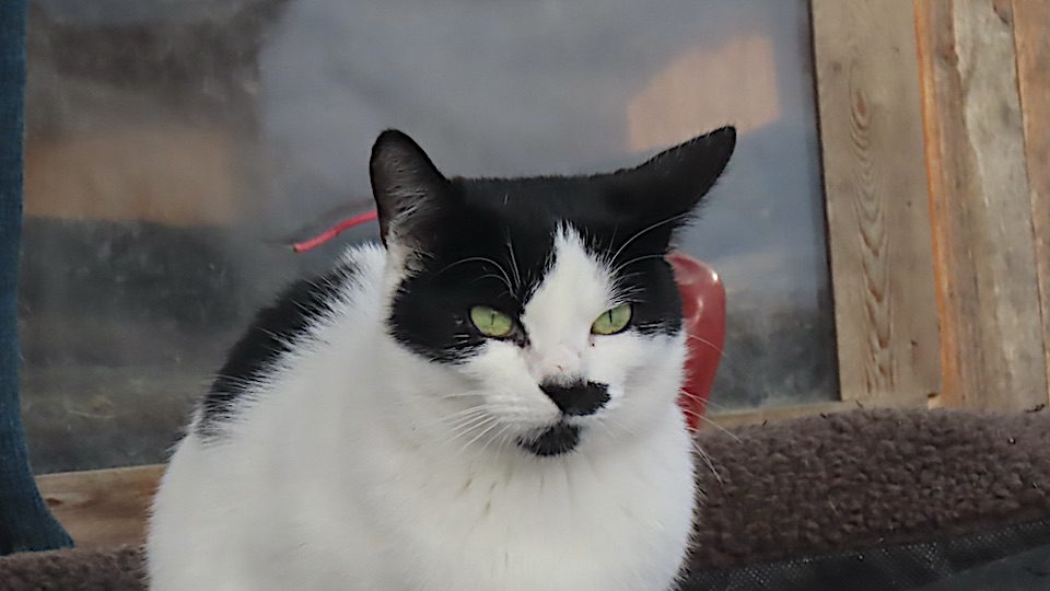 Hier, il y eut 5 ou 6 dindes sauvages sur le terrain. Les chats ont été surpris de ces oiseaux imposants. Mais dinde ou chat, tout le monde craignait l’autre. La chatte s’est avancé légèrement pour mieux les voir; mais après un court moment, elle est revenue vers moi.
