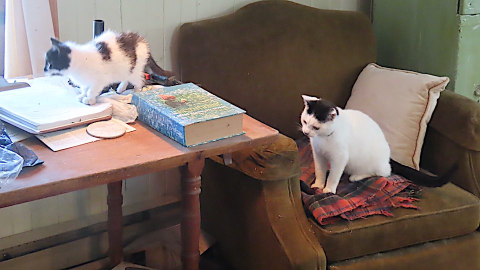 Les chats se baladent dans le rez-de-chaussée. Celui de droite est dans le fauteuil de mon père autrefois.