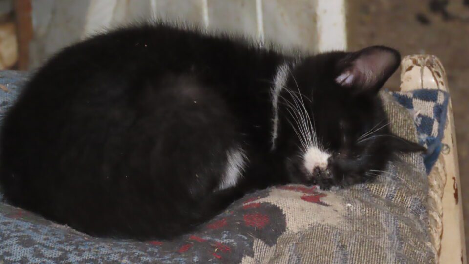 Le jeune chaton dort comme aux anges.