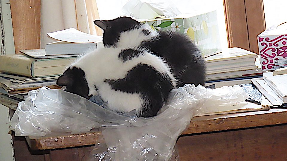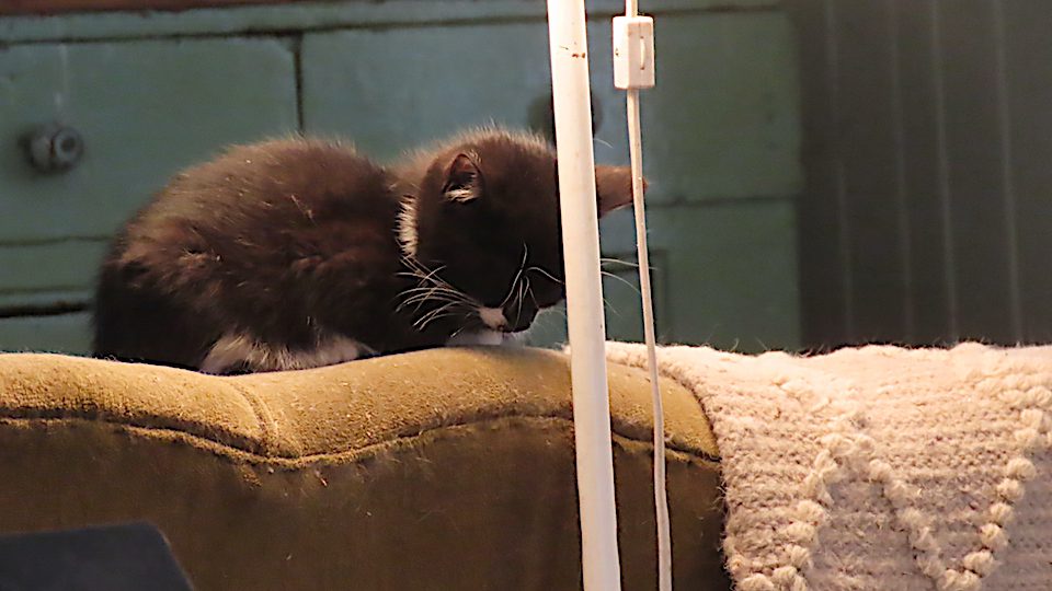 Le jeune chaton dort comme aux anges.