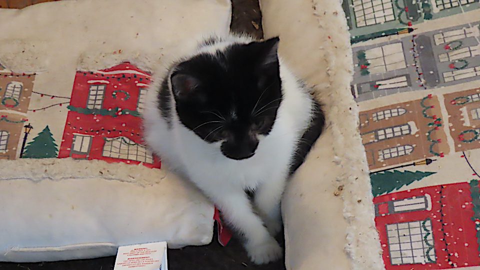 L’un des chatons s’est placé entre deux coussins.