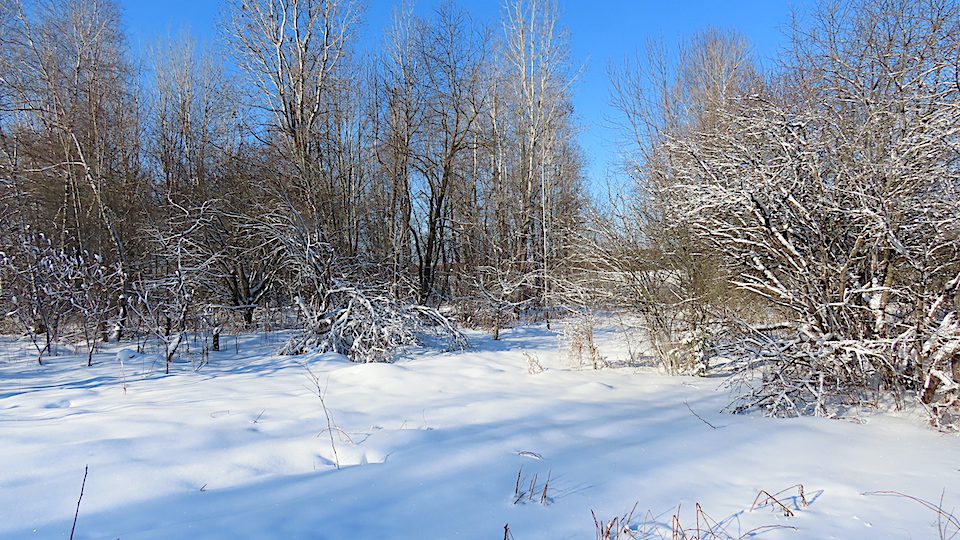 Dans les Bois-Francs, il n’y a pas du tout de cette neige qui tombe à Québec en ce moment. Le géographe Henri Dorion, venu en moto, m’avait dit, justement, « Remarque les différences entre les deux lieux. Tu constateras à l’occasion que tu n’es pas à la même place ».