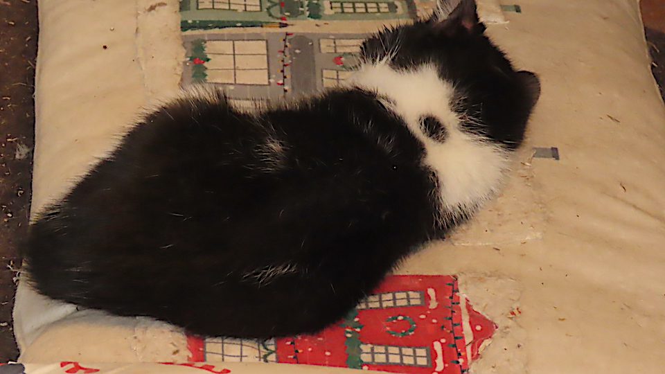 Dans un coin du rez-de-chaussée, le chat a trouvé cette place isolée pour dormir.