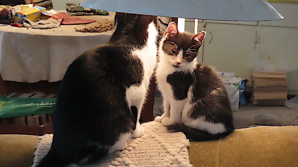 Et les chats se plaisent dans cette maison, car il fait tellement froid. Ici, vous avez la chatte et deux jeunes chatons.