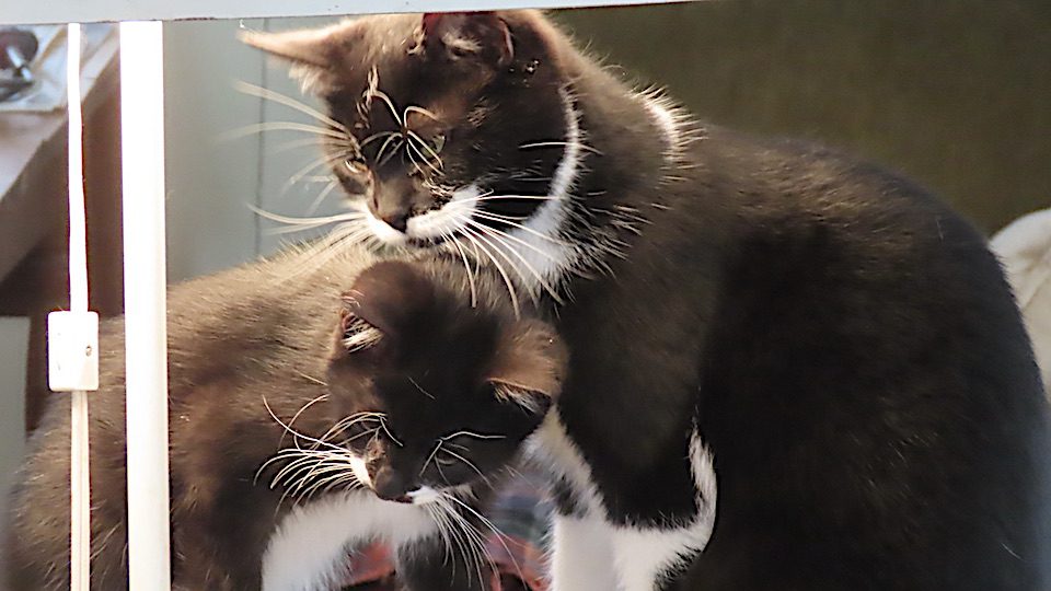 Le chaton avec quelqu’un légèrement plus vieux que lui.