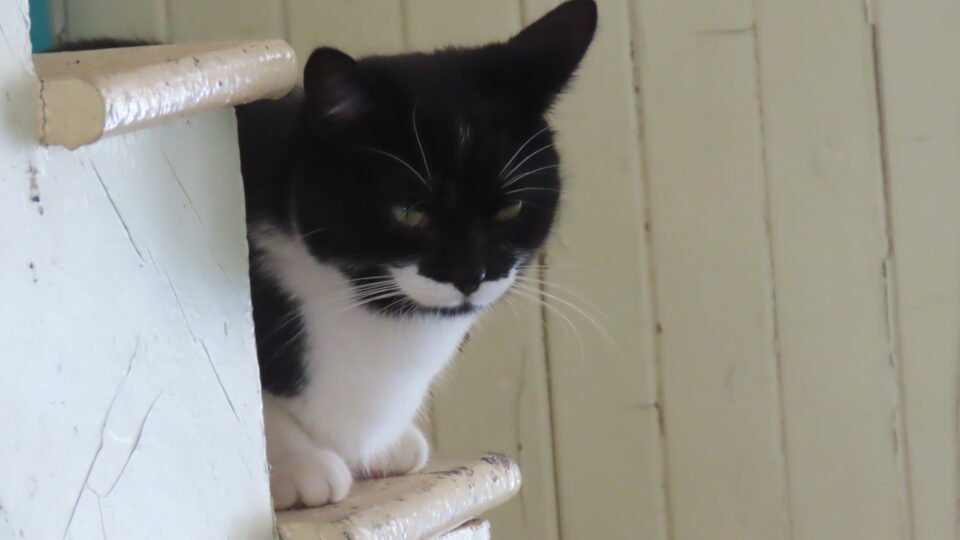 Le chat descend l’escalier.