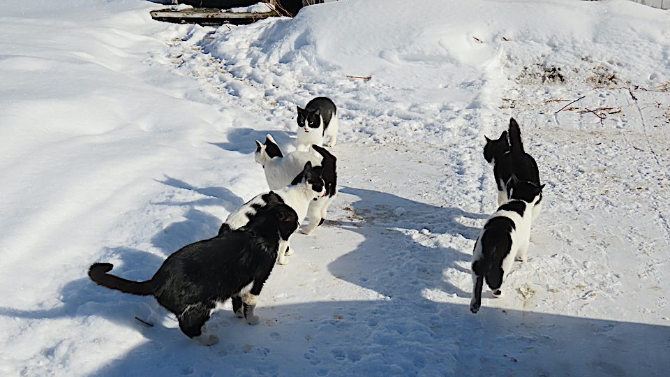 À mon arrivée, hier, à 11 heures, six chats, dont la chatte et le chat adolescent, me recevaient.