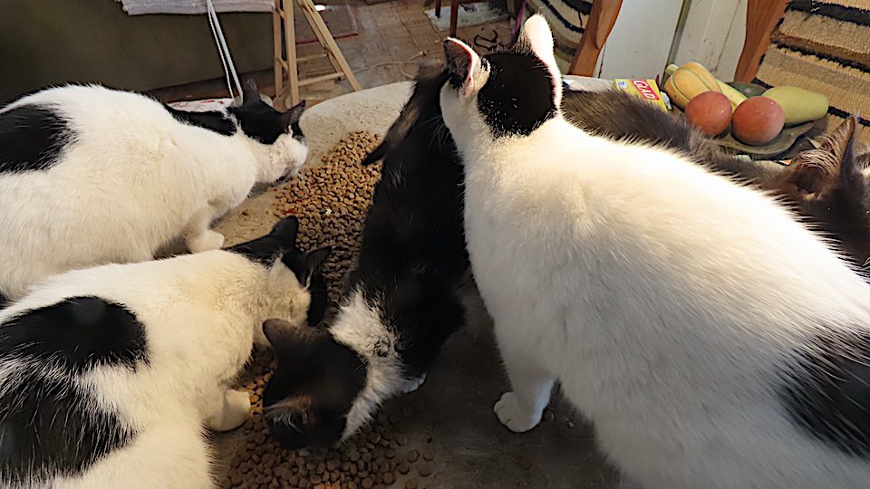 Arrivé à l’intérieur, on mange des croquettes sur la table.