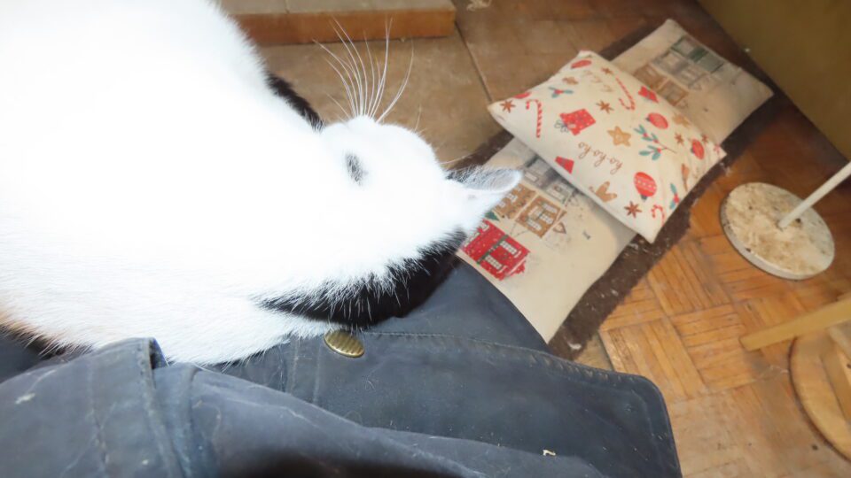 Le chat en train de manger mon manteau.