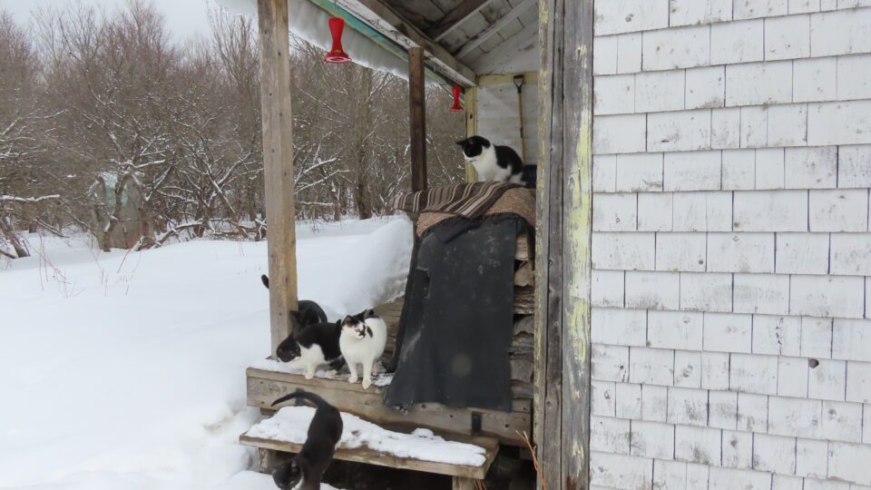 Hier avant-midi, ils étaient cinq à m’accueillir sur la galerie arrière.