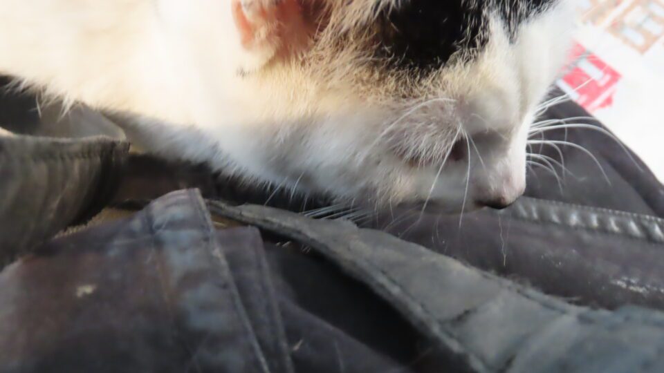 Le chat en train de manger mon manteau.