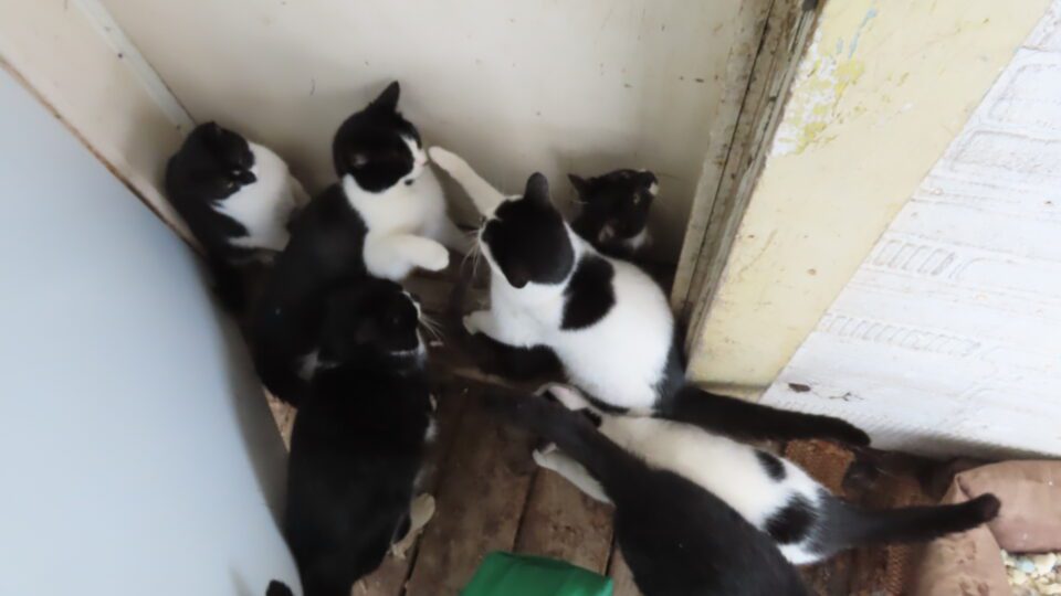 Sept chats voulaient entrer hier-matin. Ce qui signifie que ces sept chats ont passé la nuit dehors.