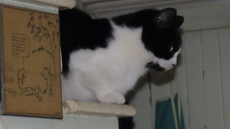 À ses côtés, il y a un dessin de (Jean-Pierre) Girerd. Deux ruraux s’échangent un mot devant un personnage au sol. « Il n’a pas pu affronter le changement d’air. » Je vous montrerai une copie de ce tableau.