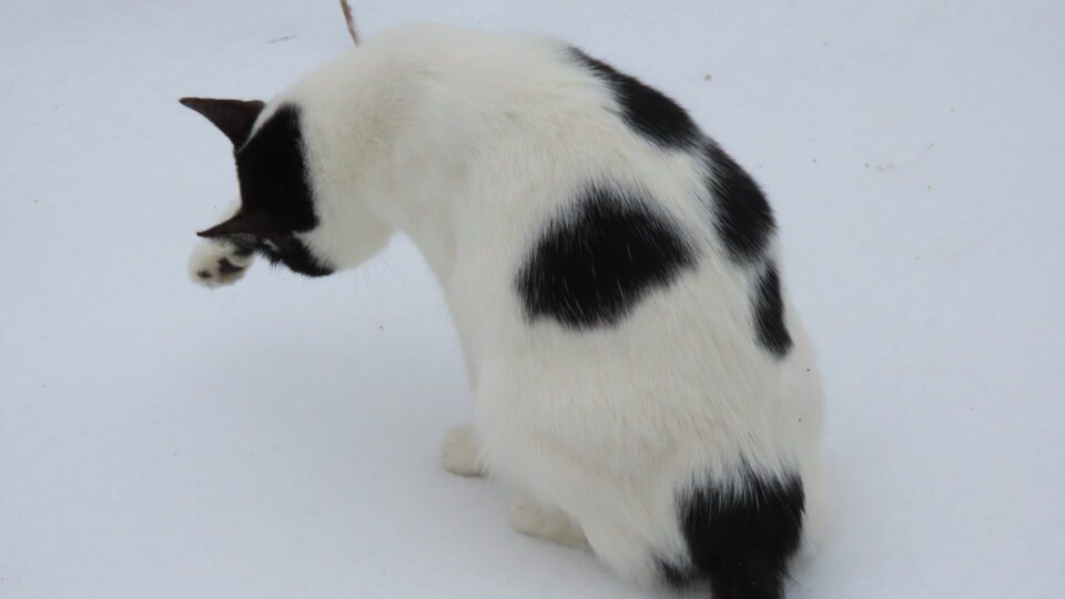 La chatte dans la neige durcie.
