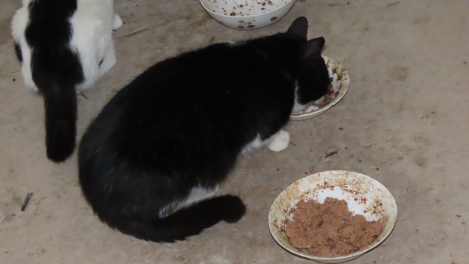 Le chat, grand majeur, est venu manger dans la maison.