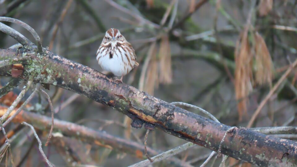 Nous avons de bien belle visite, chère amie, cher ami. Il s’agit du Bruant chanteur qui va être là jusqu’à l’habitude, jusqu’à octobre. Il arrive la dernière semaine de mars ou la première d’avril. Le voici cette année ; il n’a pas encore chanter, mais il va s’y mettre très bientôt.