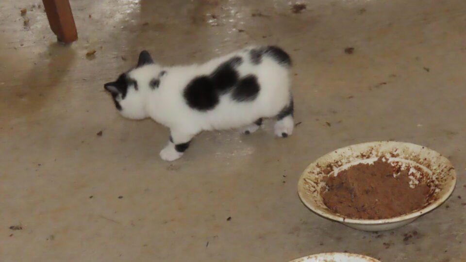 Un très très très jeune chaton se balade dans le rez-de-chaussée. Il est plus audacieux que les autres de son âge. Le coureur des bois !
