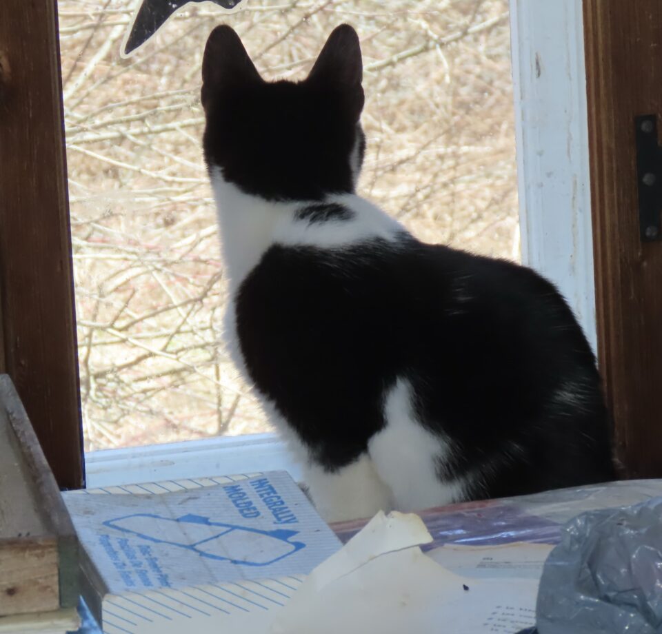 Lui regarde le verger.