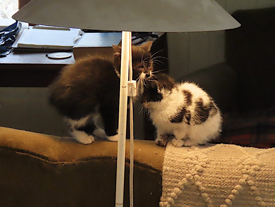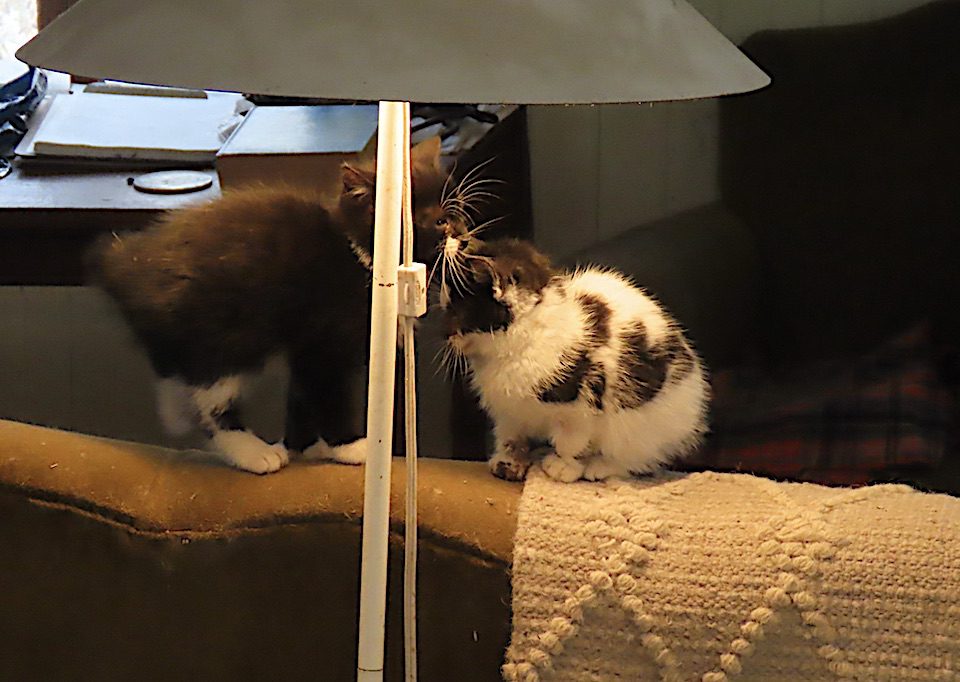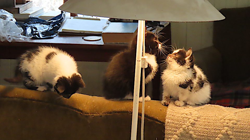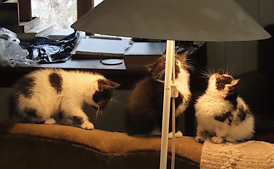 Voilà les trois au complet sur le haut de la causeuse. Ils vivent la vie.