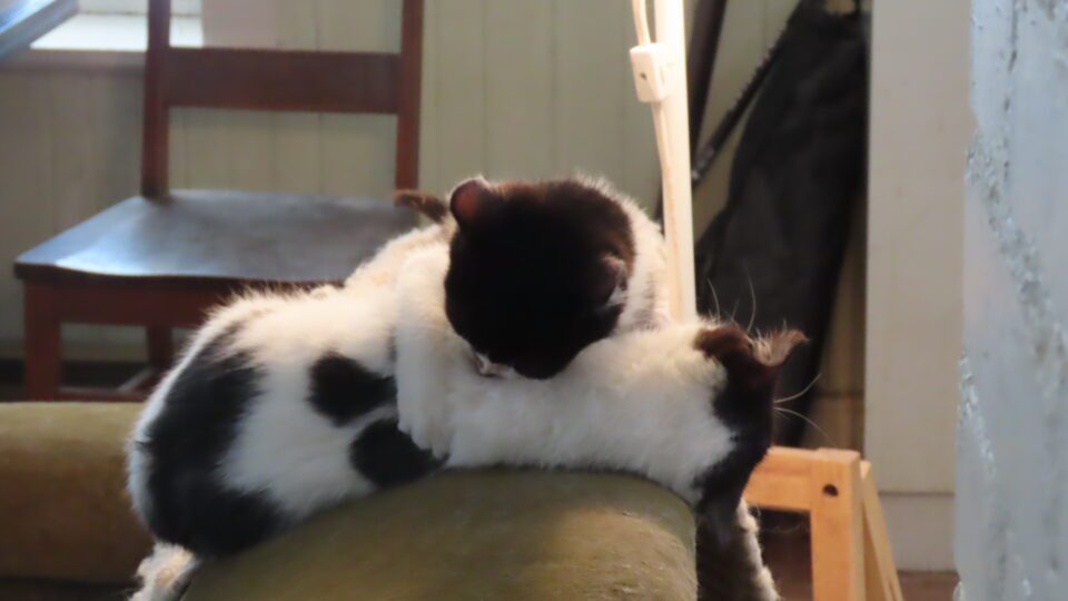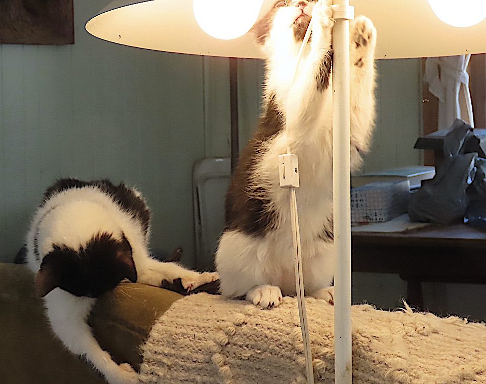 Parfois les chatons se battent sous la lampe.